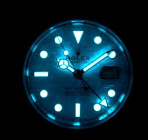 And in a darkened room after a quick blast from a UV light, the luminous glow is almost too bright (is there such a thing?) and, even better, gives one more perspective on the shapes and tones of the meteorite dial – what one might see out the window of a spaceship during a close rendezvous with a meteor if members of the Rolex marketing team had been up there first to paint on the logo and install a cyclops.