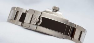 As shown in the image above, the case and bracelet color also clearly signal this as a white gold watch. Swiss clone Rolex watches does not rhodium plate its white gold pieces, and while the brand does use a proprietary alloy rich in bright palladium, the resulting hue still has a pleasant hint of gold tones.